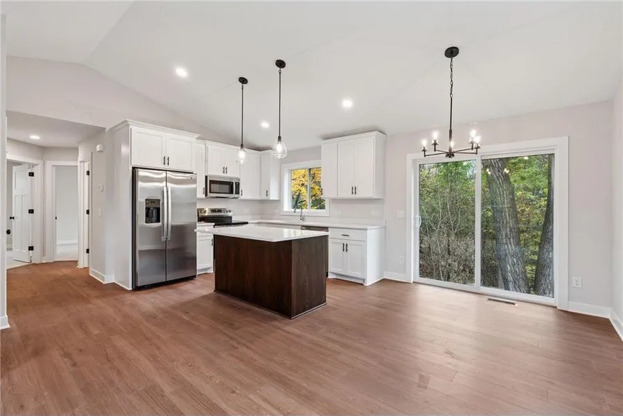 Beautiful split level home by Jonathan Homes with over 2,500 sqft of professionally designed living space! This energy efficient home offers 5 bedrooms and 3 full bathrooms, including a finished flex room that can be used as a guest room, office, gym or playroom. Step into a spacious entry with a large coat closet. The main level features a stunning kitchen with granite countertops, stainless steel appliances, and custom cabinetry, plus an open dining and great room with luxury viny plank flooring and abundant natural light. Two oversized bedrooms and a full bathroom complete this level. Upstairs, the private owner's suite includes double sinks and a large walk in closet. The finished lower level adds another bedroom, full bath, and the versatile flex room. Outside, enjoy a fully landscaped yard with sod, sprinklers, and an asphalt driveway. Every detail is thoughtfully finished- this home is truly turnkey. Quick closet available!