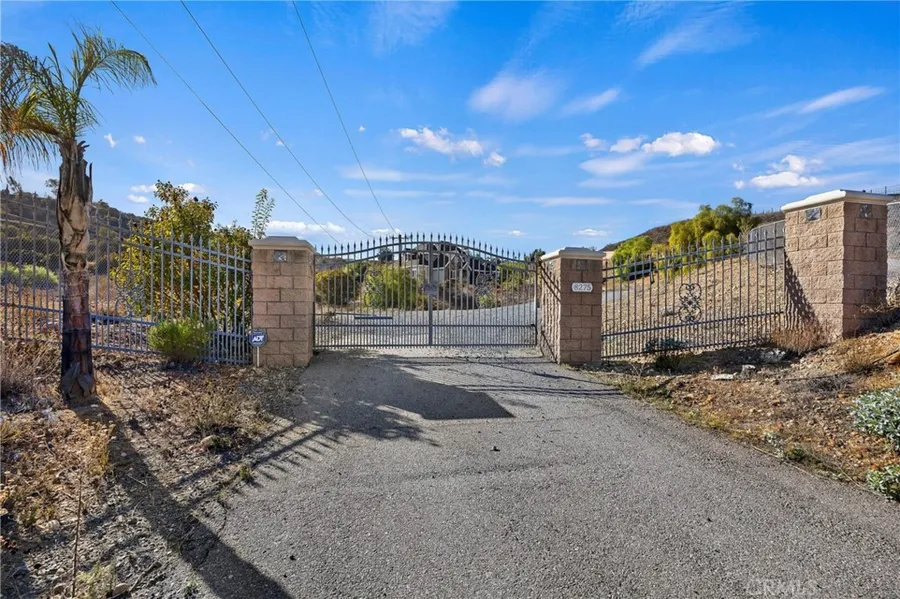 This Gated Custom-Built French Country home is nestled in the Temescal Valley of Corona. 2.38 AC. Within minutes of Dos Lagos & Corona's Shopping centers. Its county living in the heart of the city. Amazon Fresh Coming Soon. Truly a car collectors dream with a 3-car garage Plus an 8 Car (38 x42} RV Garage /Barn/Shop. Featuring Elite Craftsmanship, granite, stone, & wood throughout. The Floor Plan has a main floor master suite & an office downstairs. Two Enormous bedrooms upstairs. The master has a Jacuzzi 2-person tub, Stone Shower and a built-in vanity. The gourmet kitchen boasts custom distressed maple cabinets, granite & tumbled stone, New appliances, pot filler. The wine cabinet/Beverage area the seller will give a credit for replacement. Two separate elevation levels with room for horses, toys and a pool. Sit out on the wrap around porch surrounded by privacy. No mello roos or association.