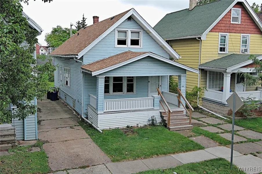 This charming Bungalow for sale is in the University district of Buffalo, NY. Walking distance to the University of Buffalo, restaurants, bike path, and the metro rail. Great single-family home or investment. Last year's rental income was $1,600 gross per month. Property has Hardwood floors, two 1st-floor bedrooms, an eat-in kitchen, and spacious living and dining room, and a full bath. Upstairs, you'll find two additional large bedrooms. Good-sized lot with covered front porch, no maintenance vinyl siding off-street parking. Basement with glass block windows, copper plumbing, and new water lines and PVC drains. Updates within the last two years include a new roof, a HE furnace, windows, and a hot water tank. Bonas, all appliances included! Square footage is 1,292 per recent appraiser measurement. A recent city inspection shows the property in full compliance. Offers due Saturday, 10/11 at 12 PM.