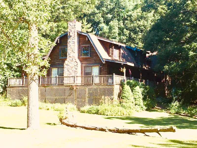 A large Log Home on 7 secluded mostly wooded acres. (click map tab then satellite to see huge wooded area) Large two story great room open to center island kitchen with large loft overlooking. 2 owners suites, one on first floor and one on second. Spacious den at the top of the back staircase also two large flex rooms on first floor that can also be used as a home office or additional family rooms. Large first floor laundry, HUGE covered front porch with wrap around deck on side of home. Walk out basement with poured concrete walls. @1/2 car attached garage with approximately 750 sq ft vaulted ceiling bonus room with half bath above garage. Many outbuildings an old style hand pump in the yard to pump fresh well water for watering flowers.