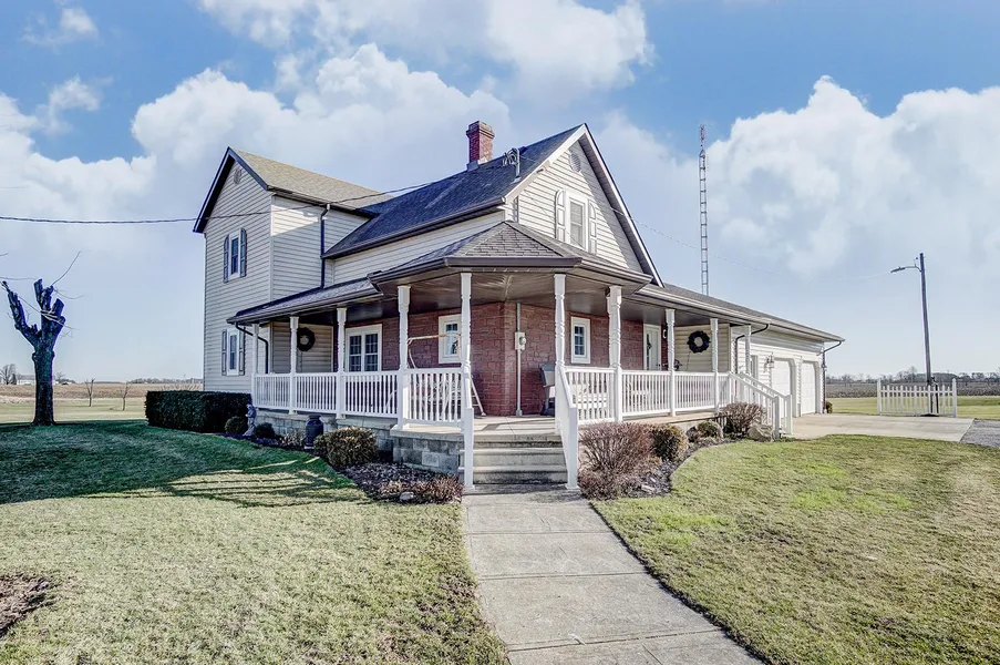 Charming country home located 7 miles outside of Celina on just over 4 acres of land with stately wrap-around porch is for sale for the first time in 40 years. This four bedroom, two full bath spacious home has a first floor. If you appreciate fine craftsmanship, you will love the custom cabinetry and large 10x6 walk-in pantry. Huge great room with fireplace opens with French doors to a low-maintenance 14x17 vinyl deck, overlooking your vast property and adjoining fields. Dining room/living room combo has built in cabinets. Oversized two car attached garage, large 44x22 barn with full second story loft deliver country living at its finest. Both home and barn have newer roofs (home in 2013 and barn in 2017) with transferable warranty. This is truly a home - cozy, comfortable and well taken care of.