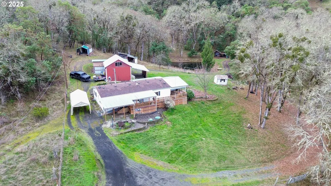 Set back from the road on just over 10 acres, this property offers a quiet setting surrounded by trees, with enough space to feel tucked away. The 2-bedroom, 2-bath home includes a den and a split floor plan that creates privacy between living spaces. New flooring runs throughout the home, giving it a fresh and comfortable feel. The real highlight is outside - covered front and side decks where you can take in wide views of the valley and surrounding hills. A large pond adds a peaceful touch to the landscape, and a spacious shop provides room for tools, toys or weekend projects. It's a place with room to spread out, breathe deep and enjoy the simple pace of rural life. Newer water heater, heat pump, A/C. Free and free-standing range.
