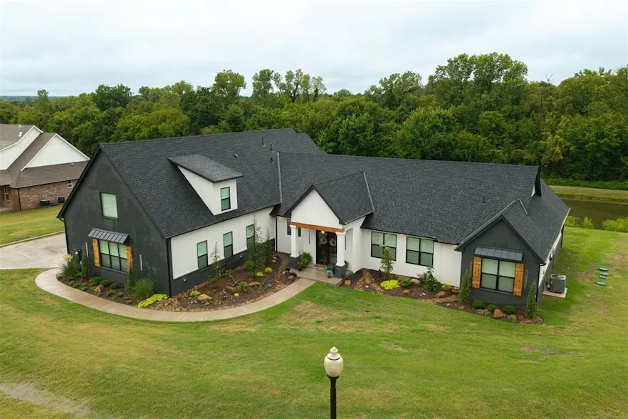 Step away from the hustle and bustle and into your dream home! Situated on a nearly 2-acre lot with its own private stocked pond, this custom-built home is brimming with luxurious details, features, and amenities. The large front porch features a modern, double-door entry leading you into a soaring cathedral ceiling view that invites you to look straight into the breathtaking backyard where you will find a nicely stocked pond. Love to host or whip up fabulous meals? This kitchen is expansiveenough to hold every party you've ever dreamed of hosting. The walk-in pantry is complete with outlets and counter space--a home for all your kitchen gadgets and appliances where they are plugged-in and ready for use and tucked away from view! The island is perfect for serving buffet style or just to enjoy a meal. There are three amazing living areas in this home: the living room featuring an 80" modern LED fireplace, the massive outdoor covered patio with outdoor sink, and the largebonus room upstairs that has its own bath and oversized closet. The primary suite is located in its own wing for ultimate privacy and features its own soaring cathedral ceiling with wooden beam, door to patio and en-suite bathroom that will exceed all expectations! The primary closet is equipped with tons of drawers and shelves and conveniently leads into a spacious laundry room. Two bedrooms share a "Jack-and-Jill" bathroom and have walk-in closets, while another bedroom is positioned as a"mother-in-law" suite for guest privacy. This home also features an oversized 4-car garage that is dream for those who want a workshop or hobby space. The garage comes equipped with electric hookups for two electric vehicle charging stations and a walk-in storm shelter tucked neatly under the stairs. Other luxury details include: Spray foam insualtion for superior efficiency, Instant Hot Water, Sprinkler System, Class 4 Shingles, Soft Close Hinges, and Designer Finishes. Shops allowed! Must see!