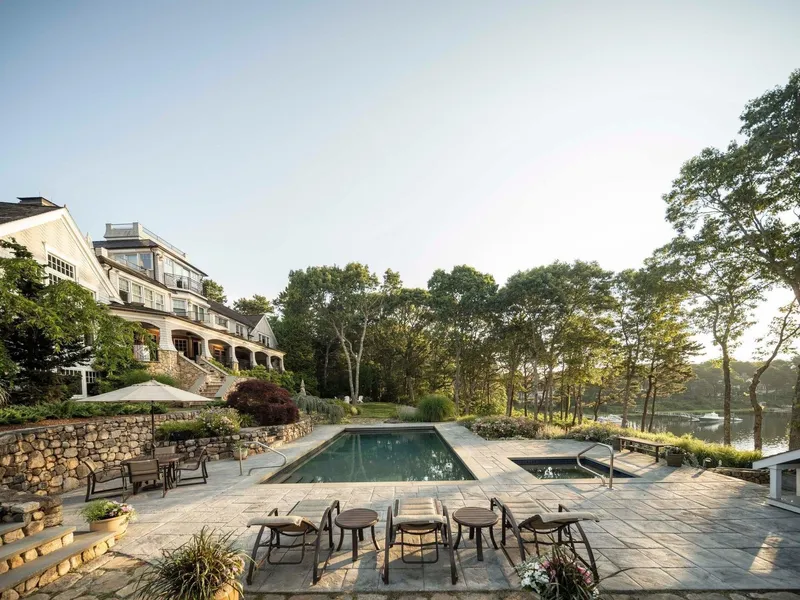 Presenting one of Cape Cod's finest waterfront estates, set on the sparkling shores of Cotuit Bay with a substantial deep-water dock, resort-style swimming pool, and stunning water views. The seven-bedroom residence is finished to the highest standards with exquisite craftsmanship and top-of-the-line finishes. Upon entering, an inviting foyer leads to the heart of the home: an eat-in chef's kitchen that opens to a spacious living area equipped with a wet bar. Glass doors and oversized windows line the waterside of the home, seamlessly connecting to a covered stone terrace with radiant heat, electric hurricane shutters and screens, and an outdoor kitchen. Rich millwork, beamed ceilings, and custom built-ins are showcased throughout, from the formal dining room to a well-appointed family room with cathedral ceilings and a stone fireplace. An en suite bedroom completes the main level, while an elevator servicing each floor provides the utmost convenience and accessibility. On the second level, an expansive primary suite boasts two private balconies, two walk-in closets, a sitting room, a sumptuous bathroom, and mesmerizing views of Cotuit Bay. Two additional bedrooms offer refined accommodations, while a self-contained two-bedroom apartment with a kitchen and full bathroom can be accessed at the end of the hall - ideal for multi-generational living or staff. Designed as a thoughtful retreat and workspace, the third level features a study with panoramic views, two balconies, a kitchenette, and a bathroom. The walkout lower level delivers exceptional flexibility with 2,000 square feet of living space, including a game room, recreation room, bedroom, and full bathroom. Outside, the luxurious pool terrace offers the ambience of a private seaside resort with stunning views of the bay and across to Oyster Harbors. Mere steps away, one of Cape Cod's most significant deep-water docks affords endless possibilities for boating, with direct access to Nantucket Sound. A rare offering waiting to be enjoyed, this extraordinary waterfront compound is located minutes from Cotuit Village, Osterville, and everything the area has to offer.