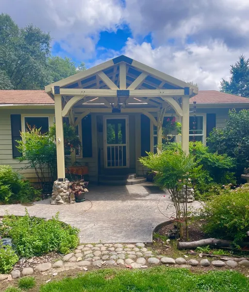 The sweetest little homestead on Pass Creek. Enjoy solitude of sitting areas overlooking creek, enjoying sights and sounds and smells of gardens including water features. Fenced vegetable garden includes, berries, plum, pear, apple and peach trees. Large deck with pergola for gathering. Multiple fenced pens, barn and hay barn. New roof coming July 7. Fireplace is propane in family room and this craft area also has sink and microwave. Sellers needs to locate replacement home.
