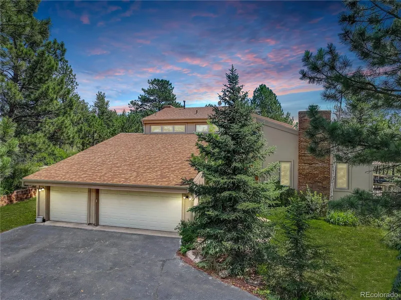 **PRICE REDUCED $61K** Nestled on five acres of heavily treed land, this 3,235 square foot two-story home offers four bedrooms, two and one-half bathrooms and a wonderful blend of modern comfort and rustic charm. Step into a grand foyer and follow the hardwood flooring that flows through the main level leading to the sunken living room with wood burning fireplace and formal dining area with vaulted ceilings. The cozy family room features a wood-burning fireplace, gorgeous wood ceiling and access to the deck. The kitchen boasts Granite countertops, Maple cabinetry, a new GE Profile double oven and gas cooktop, catering to culinary aspirations. The main floor primary bedroom is a retreat of its own, offering a wood-burning fireplace, walk-in closet, vanity and an ensuite with a soaking tub and updated shower, ensuring relaxation. A powder bath and a conveniently located laundry room complete the main level for ultimate practicality. Upstairs, three bedrooms await, alongside a spacious bathroom with Quartz countertops and dual sinks. Two bedrooms feature walk-in closets, while a loft with vaulted ceilings adds versatility with a built-in desk. Outside, the Stucco exterior complements the serene landscape. With two furnaces, two AC units and a generator with a hook-up to the circuit breaker box, comfort is ensured year-round. An unfinished walk-out basement, three-car garage and shed provide ample storage. Outdoors, newer stucco exterior, a tiered composite deck and mature trees invite you to embrace Colorado's beauty.