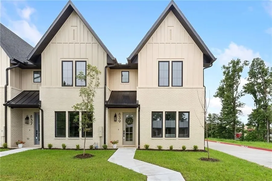 Experience low-maintenance living and modern convenience in this newly completed interior-unit townhome just minutes from Downtown Bentonville. Enjoy quick access to the Square, Crystal Bridges, AWSOM, local trails, and I-49—placing the best of Bentonville right at your doorstep. Inside, luxury vinyl plank flooring runs throughout, complementing the open-concept kitchen, dining, and living area designed for everyday comfort and entertaining. The kitchen features quartz countertops and sleek finishes, while a Ring doorbell adds extra peace of mind. Upstairs, the primary suite offers a spacious ensuite bath and an oversized walk-in closet. Two additional bedrooms share a large full bath, and the generous flex space provides versatility for a home office, media lounge, or workout area. A centrally located oversized laundry room adds everyday ease. The attached two-car garage includes keypad entry and an EV charger on each side. Thoughtfully designed and move-in ready, this townhome blends style and convenience.