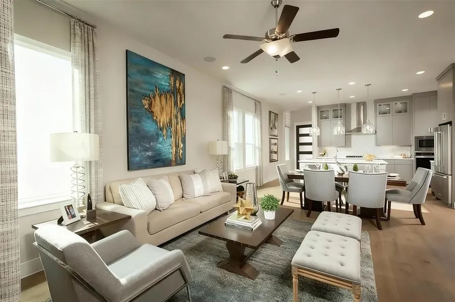 beautiful OPEN CORNER UNIT . Amazing like new , well built single family home. One occupant since built. it was the builder's model ! Light Bright, lots of Windows Open elegant floorplan. Single family home or great set up for family or roommates!. Green spaces, walkable and Side yard! Private corner home. First floor Primary bedroom ensuite bath with picture window. Lovely outside balcony AND a deck. Great spaces for 2nd 3rd and flex areas