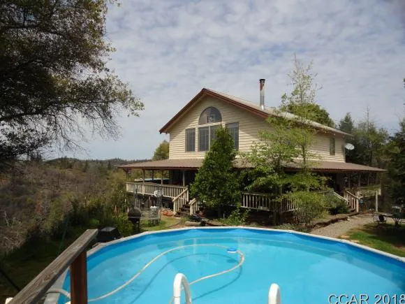 How would you like to own your own mountain, plus only being 2 minutes from shopping? This is it, your own mountain farmhouse retreat with wrap around porches! 360 Degree view, with pool and hot tub to take advantage of your private mountain. Home boasts of Armstrong wood windows, 2 beds, 1 bath downstairs, GR and DR open to loft area upstairs, with stunning pine wood walls and ceilings, exposed trusses, mstr suite upstairs with full bath, soaking tub, sep shower, brick hearth woodstove, kitchen pine cabinets with tile counters, newer oven, cooktop, central vac, ldry room with walk in wine fridge, wine cellar great for making your own wine, detached 2 car new garage. This home has so much character and charm and its a must see! $50K price reduction, sellers motivated!