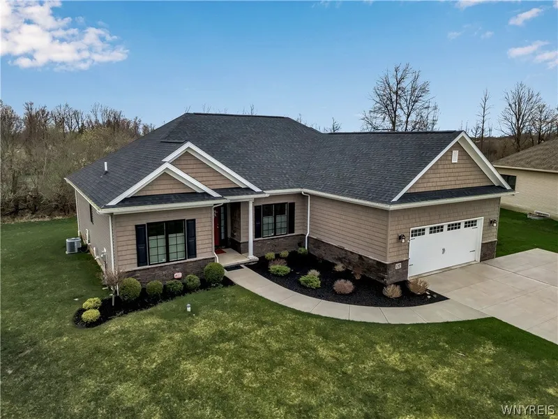 Welcome Home to this beautiful Patio home built in 2019 ! Cul de sac location - 2,100 sq ft, 3 bedrooms with large den , 2 full baths, 1 half bath - Amazing kitchen with quartz counters, stunning backsplash - beautiful tall cabinets, large eat-in area, 6 ft island , professional range hood, stainless appliances - large great room with gas fireplace - stunning hardwoods in most of the house - 1st floor laundry - lovely owners ensuite with tray ceiling - lots of storage - huge built out closet in full basement is a dream - egress window - 2.5 attached car garage - concrete raised patio, private views - lawn sprinkling system - low HO fee, easy living - nothing to do but move in to this well located pristine Patio Home! Clarence Schools. Showings commence at noon on Friday, 4/19. Open House Saturday, 4/20, from 1:00-3:00. Offers, if any, due by noon on Wednesday, 4/24. Also listed as a condo under ML#: B1531804.