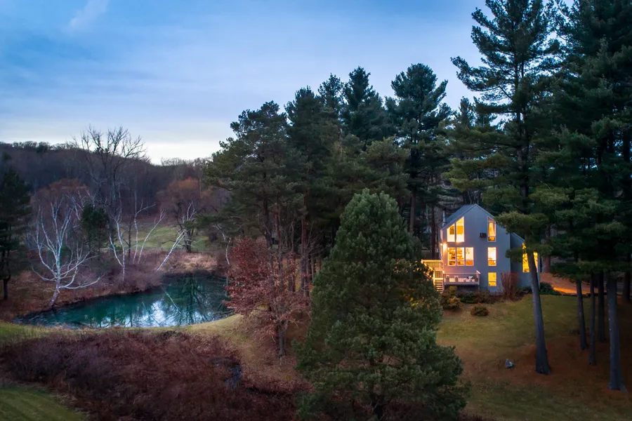 An exceptional Berkshire estate, The Paddocks is peacefully private on 3.2 acres of pastoral countryside. Harmonizing with the natural setting - nestled among towering pines - the sun filled contemporary farmhouse overlooks the pristine and picturesque brook-fed wildlife pond, paddocks, and woodlands. Large windows bring the outdoors into this airy 5-bedroom, passive-solar-heated residence featuring a vaulted living room with fireplace. Enjoy the sunny deck overlooking the sweet pond and brook. On a great walking road in Egremont. Enjoy Egremont's excellent restaurants. All this and and a quick commute to NYC.