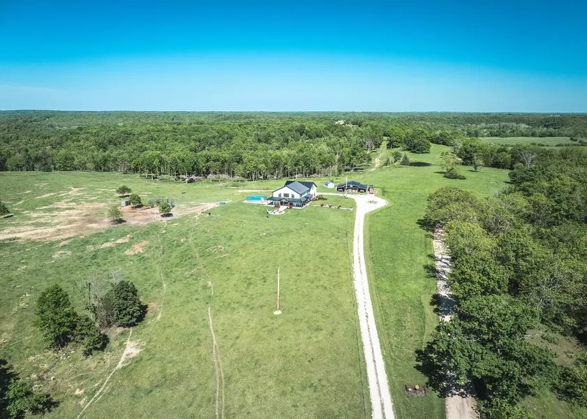PRICED BELOW APPRAISAL! Exceptional newer modern farmhouse 3-bed 2.5-bath home sitting on 84 acres with NO RESTRICTIONS! 2.5 miles to the Gasconade River access boat input, also just minutes from Waynesville, MO, only 19 minutes from Fort Leonard Wood and 36 miles to Lake Ozarks! This property is located inside Swedeborg R-III school district & the specific address uniquely provides options of 3 prominent High School options of Waynesville, Richland, or Crocker. This home offers 2,600 sqft of luxurious up-to-date living with 18' ceilings and 72 windmill fan in the main living area and 9' ceilings in the master. The home features a sleek kitchen with quartz marble countertops, Thermador commercial range/oven, & dishwasher, a commercial glass-front refrigerator, and a custom island light. The master suite offers a skirted cast iron free-standing soaker tub and a zero entry shower with custom shower doors! Standout details include 9’ Andersen double entry doors, 5-panel interior doors, Andersen windows, a built-in fireplace wi the shiplap surround up toward the soaring ceilings and a wraparound porch with recessed lighting, perfect for enjoying the stunning land and picturesque sunsets. The property is a working farm with newly fenced 39 of the 84 acres of pasture which was also partially cleared for livestock. Remaining pasture provides cross-fencing which is ready to open further livestock operations. The acreage is abundant with wildlife, perfect for hunting enthusiasts! An 80x40 structure to store hay, equipment, used as an animal shelter or additional vehicle parking when needed. Other amenities include ADA-compliant 36 main door clearance, Bluetooth speakers in rear pool patio lights, a 30’ above ground pool and a completely finished 1,600 sqft attached heated and insulated garage/shop which features metal walls, perfect for car washing and fits 4 - 5 vehicles and a UTV. This home also features stunning exposed ductwork! The wraparound concrete walkways to the outside lead to a large built-in firepit patio which overlooks the incredible views this one-of-a-kind property offers! This home is packed with stunning modern yet farmhouse finishes!