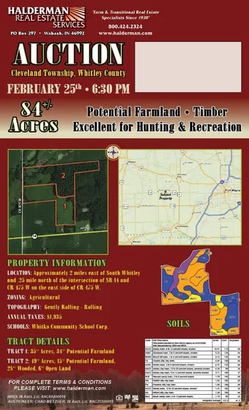 Auction Location: Eberly Hall : 702 S. State Street, South Whitley, IN 46787