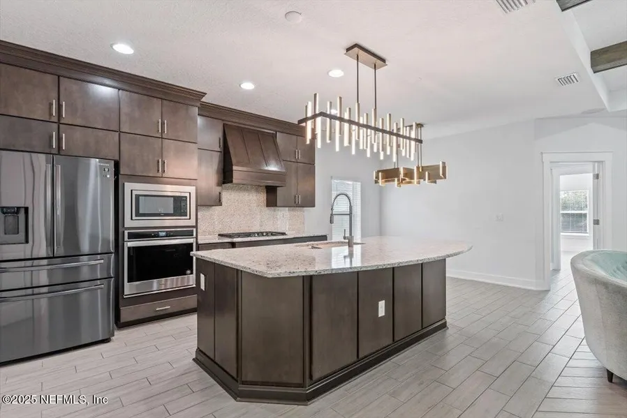 SPECTACULAR 6 Bedroom 4 Bath home w/ double garage located in St Johns County in desired BEACON LAKE COMMUNITY! This Beautiful Home & Community have so much to offer! See document tab for additional info! Home features extended covered porch, spacious livingroom with open concept, architectural details, exposed beams & surround sound system. Exquisite lighting sets the stage for relaxing or cooking in the awe-inspiring kitchen with center island, quartz countertops, limestone back splash & walk-in pantry. The guest suite or in-law quarters is conveniently located just off the kitchen with an eye catching tray ceiling. The large master suite features a bay window, dream bathroom and custom california closets is located on the 1st floor along with the other 4 bedrooms of which one includes a Murphy Bed w/ Home Office System. The soothing 6th Bedroom is upstairs & features tray ceiling, california closets & private bathroom. Enjoy relaxing on the screened lanai ready for summer kitchen!