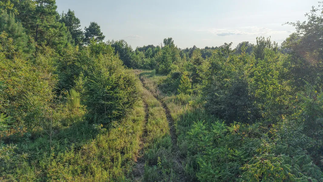 The land is a blend of young hardwoods, native pines, and scattered mature trees, creating a diverse habitat for wildlife. Dense brush provides natural cover, while a network of trails makes it easier to navigate across the property.