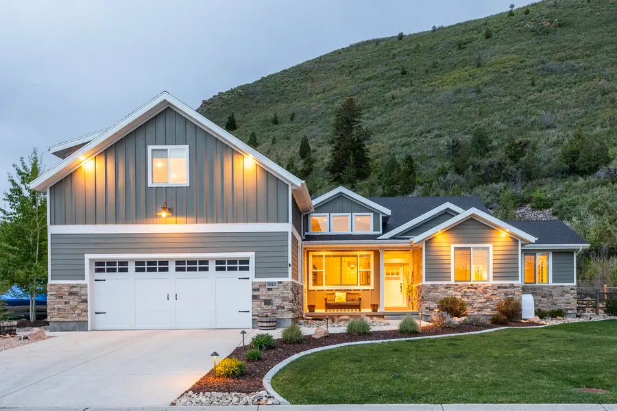 Located on a full acre at the edge of the Uinta National Forest, this stunning Modern Farmhouse offers privacy, space, and exceptional mountain living. Backed by open space and a pristine hillside, the property is just a short walk from Beaver Creek. The home features a vaulted great room, a light-filled kitchen with a large island, and an open layout connecting the dining and living areas—all overlooking a beautifully landscaped backyard with a covered deck, patio, and sparkling pool. A built-in dog door and pet entry add thoughtful convenience. Enjoy main-level living with a spacious primary suite, laundry/mudroom, office, and two additional bedrooms with a shared bath. A large, finished flex space above the garage—with its own bathroom—is perfect for a guest suite, studio, or game room. Additional highlights include an oversized 2-car garage with EV charger, detached 1-car garage, and no HOA restrictions. Schools, the Kamas Aquatic Center, shops, dining, and world-class skiing in Park City are all nearby. Endless trails, reservoirs, and outdoor adventures await just minutes from your door.