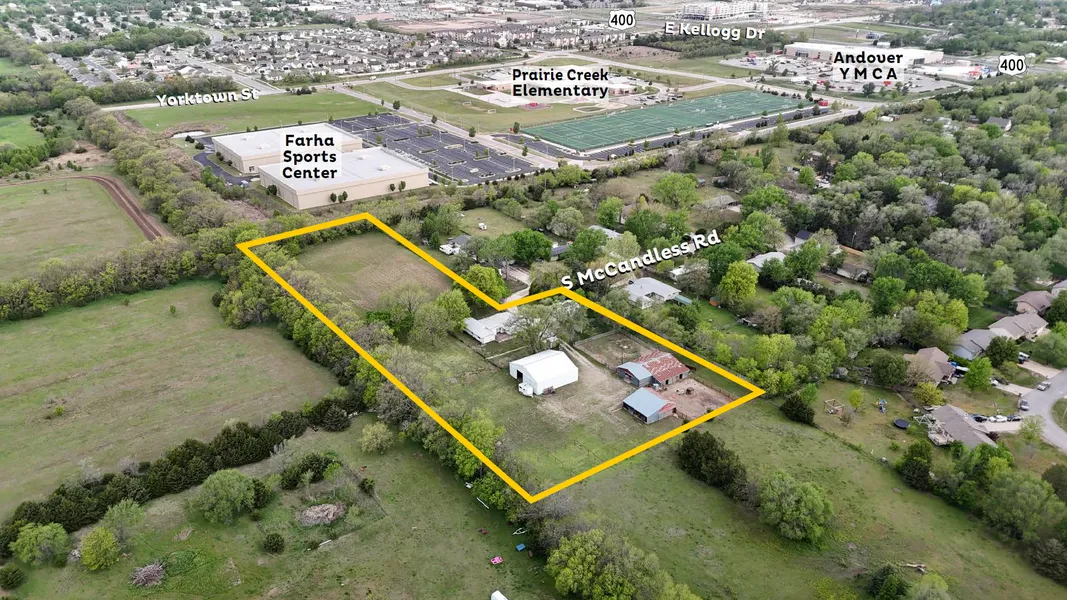 Research Parcel InformationAt Kellogg (US Hwy 54/400) and Andover Road, drive East approximately 1 mile to SW Prairie Creek turn right and drive 1/2 mile South to property.