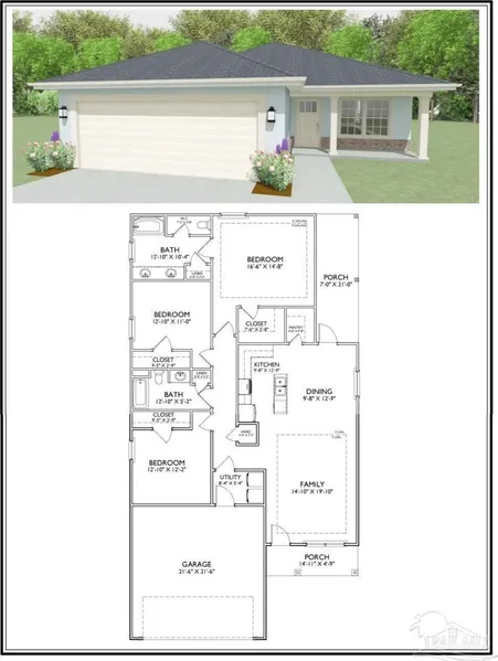 Introducing the Webster, it offers three bedrooms, two baths, and a two-car garage. The front exterior of the residence features brick construction, while board and batten vinyl siding is utilized on the remaining sides to ensure durability and ease of maintenance. The open-concept plan with 9' ceilings seamlessly connect the living room, kitchen and dining area. The living room is enhanced by a trey ceiling, fan, and recessed lighting. The kitchen boasts shaker cabinets, granite countertops, faucet with pull down sprayer, an island bar with seating, a walk-in pantry, stainless steel appliances to include a built-in microwave, smooth top range, and dishwasher. Covered front and back porches for relaxing while overlooking the beautifully landscaped yard. The master bedroom includes walk-in closet and a private bath with linen closet, large vanity, granite countertops, and a garden tub with tiled shower walls. Additional bedrooms have large closets and ceiling fans. Hall bath has granite countertops and fiberglass shower/tub combination and linen closet. The laundry room provides direct access to the two-car garage. The garage has attic stairs and automatic garage door opener. This all-electric home is equipped with a Ring Video Doorbell. Additional highlights include hurricane panels for added protection, architectural shingles for longevity, and a stem wall foundation for enhanced stability.