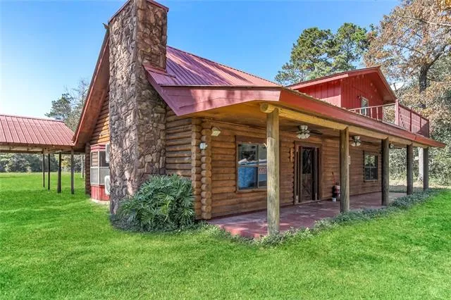 The country lifestyle is calling you home. Porch & balcony overlook beautiful private 5 plus acres with a pond in Folsom. Rustic log cabin with open floor plan, brick hearth, 3 bedrooms & loft area. Attached covered parking for cars & a boat. Preferred flood zone C. Award winning Folsom school district.