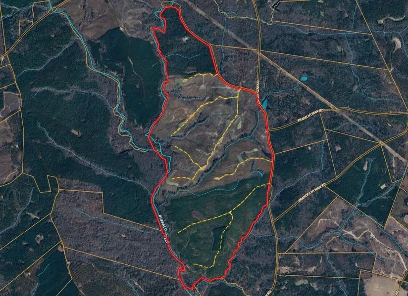 1.32 miles of frontage on Buffalo Creek and 1.45 miles on Sandy Run Creek.