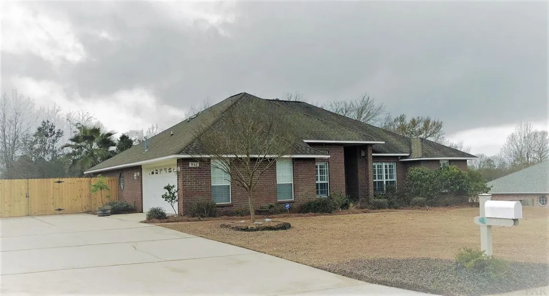 Traditional Style Four Bedroom, Three Bathroom home complete with a Saltwater pool and big backyard! Bold Brick Pillars greet you at the Front Door inviting you in for a personal tour. Entering the home, you are greeted by the sparkling crystal blue pool dancing in the sunlight from the backyard! The Formal Dining Room is just inside the Foyer with Beautiful Engineered Hardwoods, Plantation Shutters and Updated Chandelier. The Living Room just sits beyond with a white mantle over the Gas Fireplace. The Kitchen and Eat-In Dining Area also enjoys the splendor of the pool view. The Stainless-Steel Refrigerator is brand new, a perfect addition in the Kitchen. Just off the Kitchen is the Large Laundry Room and access to the Two Car Garage. Inside the Garage is a fold-down train-table just ready to be designed for your enjoyment. The Master Suite is just off the Kitchen and features separate sliding glass doors to access the covered patio and pool. The Master Bathroom features TWO walk-in closets, a double vanity, Garden Tub and a Separate Shower. A Separate Bedroom and Bathroom stand-alone from the rest of the home, creating a perfect guest suite! Just off the Living Room is an Office with Plantation Shutters. The two remaining Bedrooms and Hall Bathroom also share this hallway! The sliding glass doors in the Living Room provide the beautiful view of the pool. The backyard is privacy fenced, with a second fence inside providing privacy from neighbors. The shed and built-in playground are added bonuses!