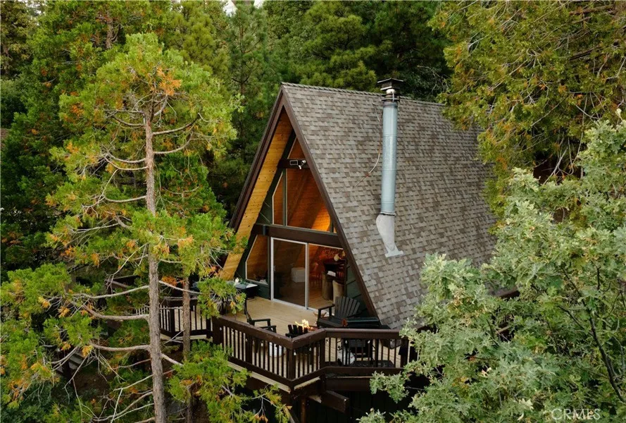 Set above Lake Arrowhead and surrounded by towering pines, this three level home was thoughtfully remodeled in 2023 with clean finishes and a layout that makes the most of the setting. On the main level, you’ll find cathedral ceilings, a cozy wood burning fireplace, and open living that flows out to a wraparound deck, perfect for grilling, lounging, or enjoying the treetop and peekaboo lake views. The kitchen was refreshed with new cabinetry, tile, appliances, and plumbing. A bedroom and full bath on this level make for easy, no stairs access.