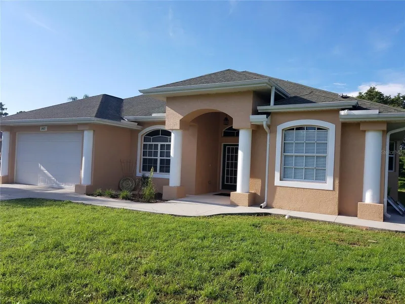 CITY WATER..... This home features 3 oversized bedrooms, 2 baths, has a GREAT floorplan, ceramic tile thru out the house, living room, dining room, and a family room. a corner brunch area can be used for the kitchen and the dining for an office/4th bedroom. 42-inch kitchen cabinets, granite counter tops, ALL tall pocket sliders, tall because these are 10'4 walls and vaulted ceilings, primary bedroom has a tray ceiling. living, dining and primary bedroom all go out to the large lanai 21x14 lanai area. Primary bedroom has 2 walk-in closets, and large bathroom with double sinks and room for a vanity area and large walk-in shower. This was a custom-built home. Back yard has a small fenced area for pets. NEW ROOF 2024, NEW AC 2025