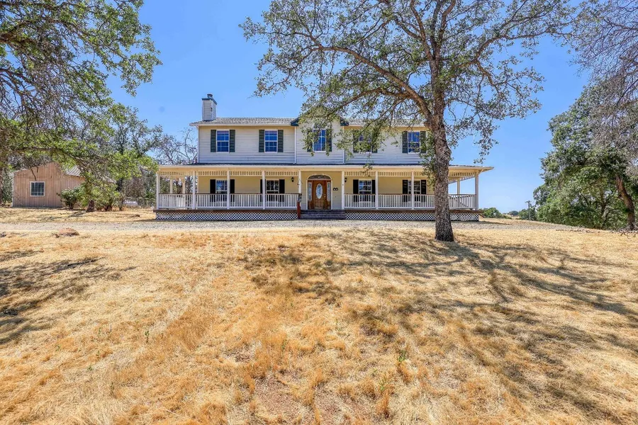 Country Living at Its Finest! This gorgeous estate includes 15.7 acres of perfect horse property. With over 3400 sq ft, this custom-built home includes 3 bedrooms (primary downstairs), plus an office (possible 4th bedroom), loft area & a spacious kitchen w/ granite countertops, hickory cabinets, stainless-steel appliances & a lake view from the kitchen window that will take your breath away! Horse amenities include a 4-stall MD Barn (with electricity), 3 tack rooms, wash racks, fenced pastures and 2 outdoor arenas. NID GRAVITY fed irrigation - 4'' pipe to property. Owned Solar. Extra deep 3 car detached garage with approx. 1400+ sq ft of space above - currently being used as an office. Just down the street from Camp Far West Lake, only 15 minutes to downtown Lincoln and less than 1 hour from SMF. You won't want to miss it!
