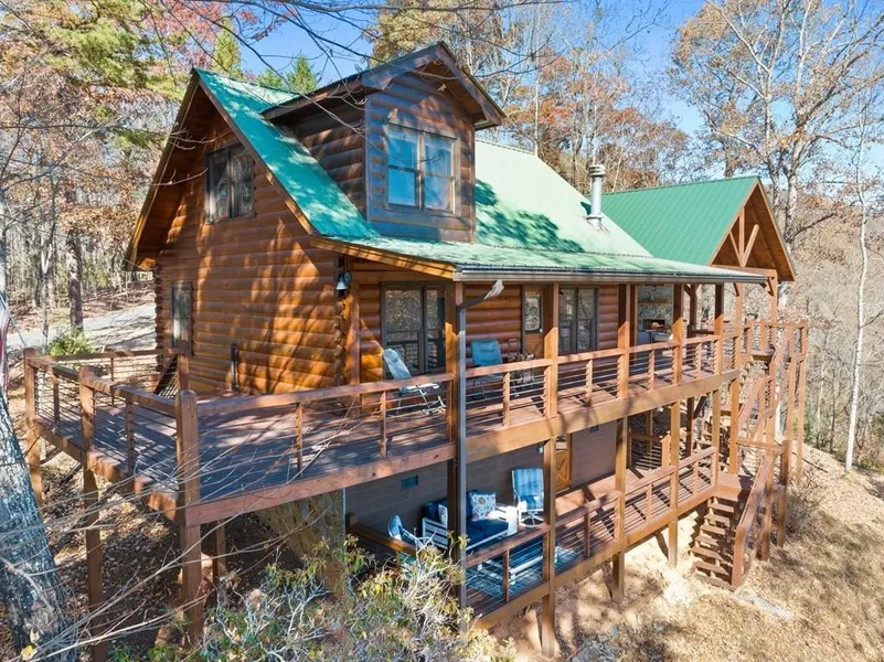 VIEW VIEW VIEW Exceptional Mountain Log Cabin – Views, Comfort, and Quality Construction If you've been searching for a mountain retreat that combines breathtaking views with craftsmanship and comfort, this Sisson-built log cabin is the one. Just listed, and ready to impress for the upcoming season, it belongs on your must-see list. Property Highlights: Outstanding Condition: Recently refreshed with brand-new appliances (installed just last week). Impeccably maintained inside and out—come see how it stands apart from what you may have already toured. Spacious Outdoor Living: A 38' x 25' covered lounging area with a real wood-burning fireplace sets the stage for gatherings year-round. Expansive decks offer multiple vantage points to soak in panoramic mountain views and the tranquil setting. This cabin makes your transition to the mountains seamless. Bring your personal items and settle right in. Flexible Spaces: Plenty of room for relaxation, entertaining, and recreational activities, whether inside the cabin or out on the decks. Location You'll Love: Conveniently located between Blue Ridge and Ellijay, giving you easy access to the best shopping, dining, and outdoor adventures North Georgia has to offer. Sits on a paved road—no winding switchbacks or steep drop-offs, just an easy, stress-free drive to your mountain getaway. Why This Cabin: This isn't just another mountain property—it's a lifestyle. From the craftsmanship of the Sisson log construction to the thoughtful outdoor spaces and unbeatable location, it offers comfort, charm, and a true sense of place. Don't wait—opportunities like this don't last long. Call your Realtor today to schedule a showing. This cabin will not disappoint!