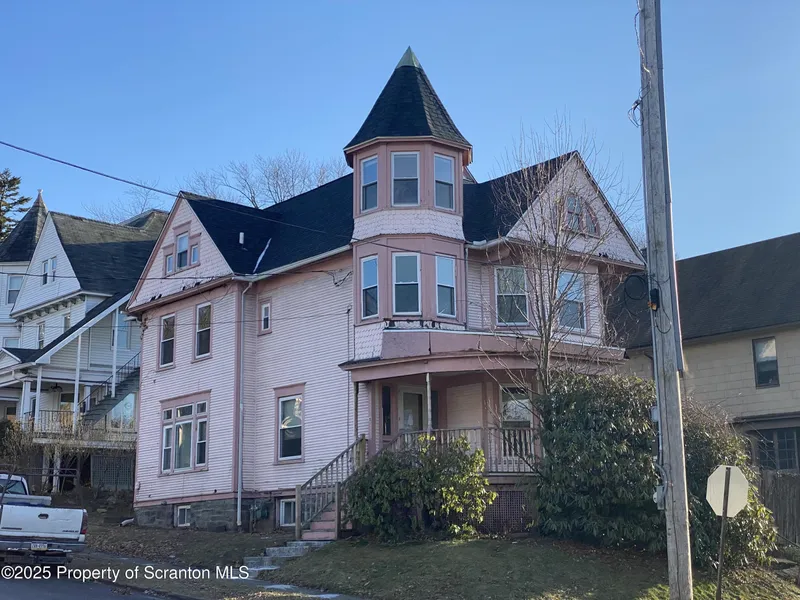 Beautiful Victorian style home with ample space for large family or investor in the Hill Section of Scranton, close to colleges and hospitals, on main bus route. Stained glass windows, charming home with great layout, finished walk up attic, 3 zoned heating. Spacious 6 bedrooms, 2 1/2 bathrooms, laundry room on main level. NEW ROOF 2025. Updated flooring and windows. Gas heat, Gas hot water. Off street parking, low maintenance fenced yard. All information is approximate, not warranted of guaranteed. No FHA or VA loans.