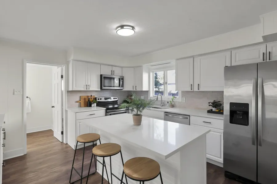 This beautifully renovated home near Mingo Park combines modern updates with timeless character. The brand-new kitchen features white cabinetry, quartz countertops, a tile backsplash, center island, and stainless steel appliances-perfect for any home chef. Enjoy low-maintenance brand new LVP flooring throughout most of the first floor, two fully updated bathrooms, and the convenience of first-floor laundry. The first-floor bedroom or office offers a cozy fireplace with the original tile surround, adding warmth and charm. Upstairs are two additional bedrooms with new carpet, split systems, and a tastefully remodeled full bath. Outside, the two-car detached garage is a mechanic's dream-extra deep, with automatic openers on both sides and loft storage. Major updates include new roof, new paint, new kitchen, new flooring, new fixtures, updated plumbing with new supply lines, newer windows, and newer water heater. Situated on a quiet one-way street next to Mingo Park with easy access to schools and downtown Delaware, this home is truly move-in ready and offers the perfect blend of modern comfort and classic character. Don't miss it! **Please see A2A Remarks**