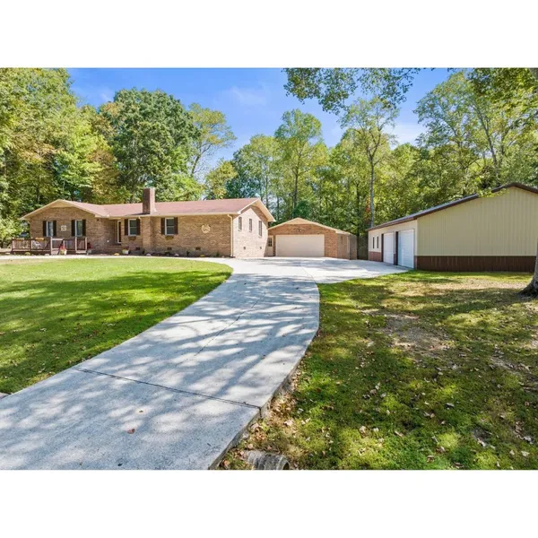THIS HOME IS A MUST SEE! Beautiful Renovated Home with huge (22x35) Workshop inside a extra large 4 car garage (35x60). Also an additional 2 car detached garage close to home. 3 Bedroom home with 2 full baths and open floor plan. Living room is large enough for all your entertaining adventures. Spacious kitchen with a sizable island. Built in pantry. Stainless appliances. Screened porch with a view of the swimming pool, and private access to a boat dock that is just down the road. Seasonal view of lake from front porch. Three parking spots available for rent at the ramp access for only $25 a year for a spot. Home is one level with a wide hall. This little piece of paradise is perfect for almost everyone. If sq footage is important, please remeasure.