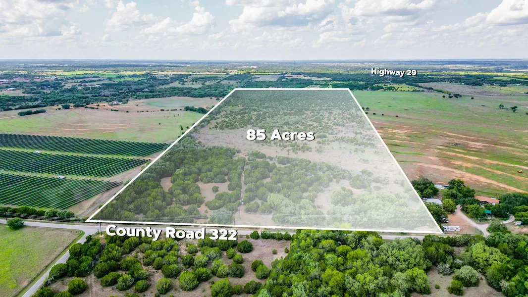 Research Parcel InformationFrom Bertram travel south on FM 1174 for 1.6 mi, turn left on CR 322 (Old Hwy 29), travel 1 mi, property entrance on the left.