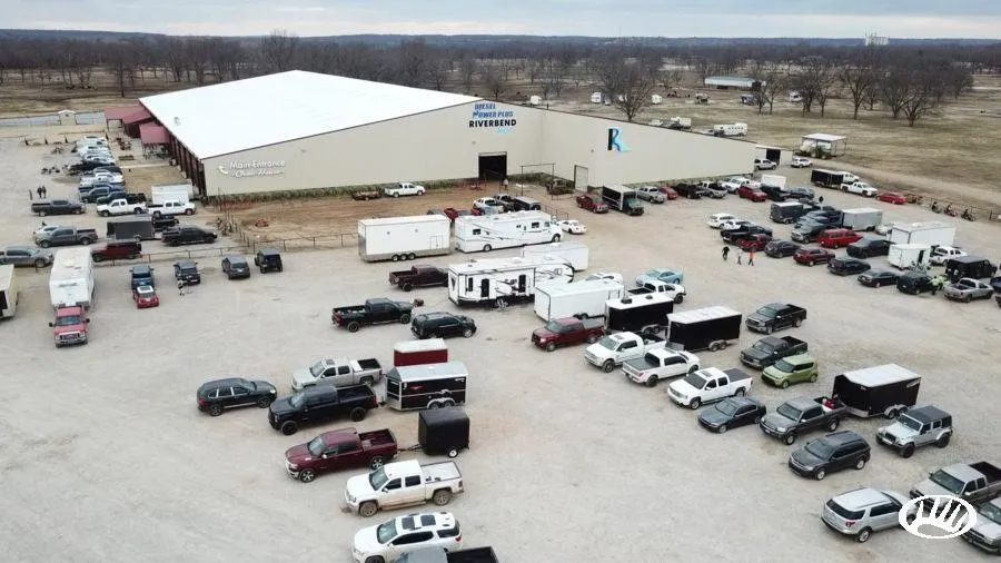 The Riverbend Arena offers a 130,000 sq. ft. building with a 150’ x 275’ arena floor with watering system, 5 PBR level bucking chutes, 50 sorting pens and 144 horse stalls. The massive steel building has a 42 ft. tall center height with 18 ft. walls. Under the same roof is bleacher seating for 1200 spectators and an enclosed area for concessions, restaurant, bar, offices and large banquet room. The Arena has been host to rodeos, team ropings, barrel racing and other top-level equestrian and education events along with tractor pulls, motorsports, concerts, charity runs, weddings and private events. There is a 150’ x 300’ outdoor arena and 21 RV hookups located around the huge parking lot. Also included is a 25’ x 25’ garage and a 40’ x 50’ barn with an unfinished apartment and eight outside pens with water. NOTE: All restaurant, kitchen and bar equipment, banquet supplies and furnishings will be available for purchase after the real estate auction.