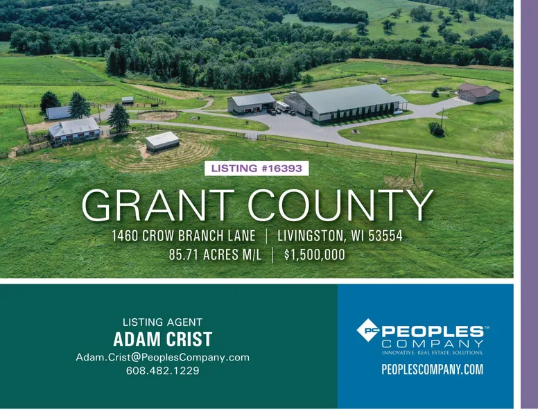 Welcome to the highly sought-after driftless region of southwestern Wisconsin where this phenomenal 85± acre horse and sportsman’s property sits with endless 360-degree views! The entrance to the property is located at the end of Crow Branch Lane giving all the privacy one desires and showcasing the rolling terrain and sweeping valleys. As you crest the ridgetop you’ll be greeted by breathtaking views in every direction.