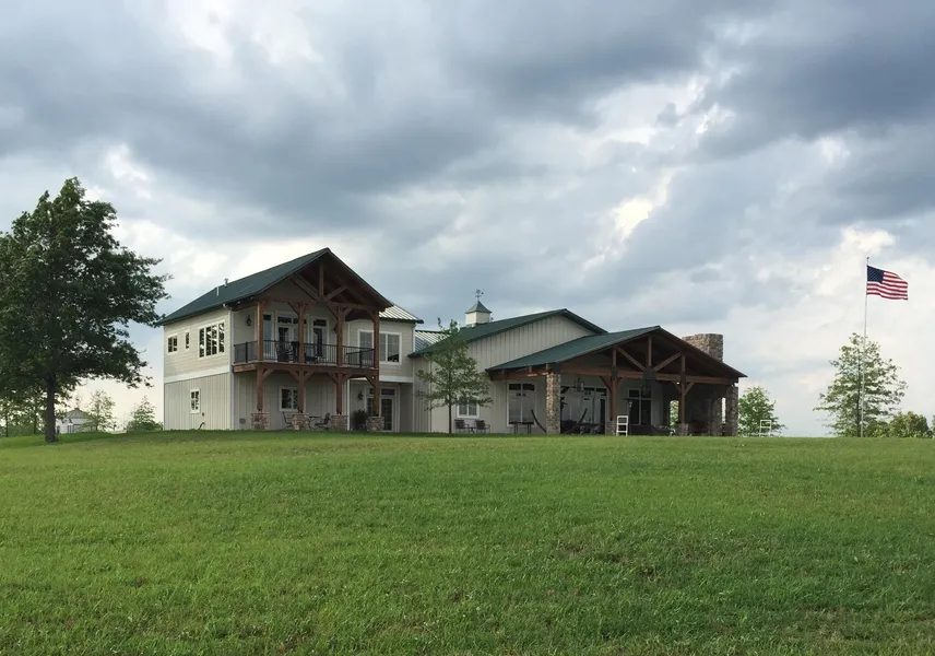 Amazing gated Timber Frame 6,000 sf lodge overlooks bottoms and 7 acre stocked lake with dock. Set up for entertaining and retreats. Master Suite, 2 private bedrooms, 2 bunkrooms all with private bathrooms. 3 levels of security, dedicated hubs for high speed internet and cell service. High level of finish of main living area. Attached 56 x 64 high ceiling equipment shed, drains and concrete floor with storm room and ready to add hangar. 2 inch main of public water and 200 amp service. Luxury bug-out room. Large chicken house.
