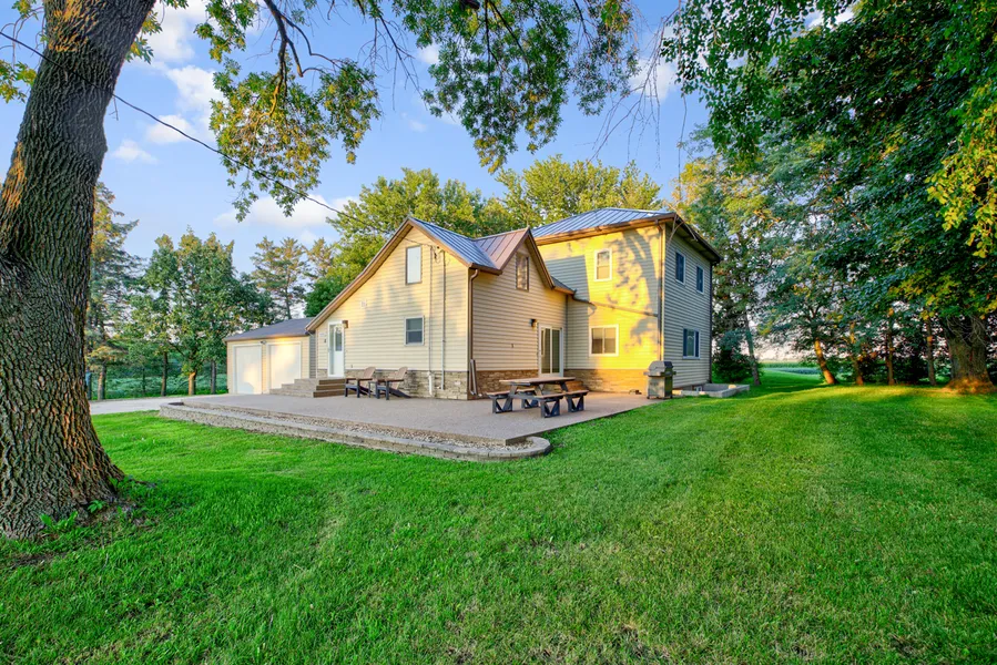 Looking for an acreage? Sweet set up at this 14 acre property. 3 bedroom, 3 bath, 2 stall garage. With two outbuildings, 40x80 machine shed and 40x160 pole building. Pole building has a cement floor and half of it is heated and has water. New steel roof and siding in 2015. So many other updates! 7 tillable acres rented to a farmer for extra income. Its a must see to appreciate!