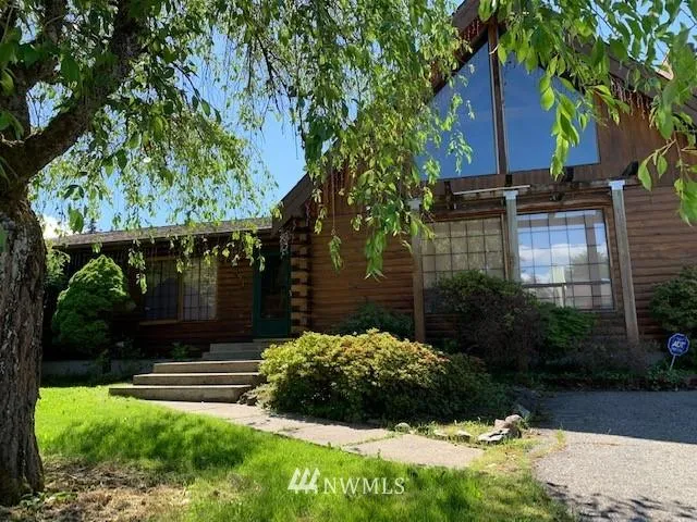 This log home is unique with original woodwork. It sits on a 40,946 sq. ft. city lot and offers an oversized 660 sf garage/shop that is partially sheet rocked. The open airy feel of this light and bright home is exquisite. The circular floor plan of the kitchen, din room and liv room is perfect. The loft that overlooks the living room can be a great office, reading room, media space, or bedroom. The primary bedroom was made larger by eliminating the 3rd bedroom. The floor to ceiling brick on the fireplace makes a statement. There is a deck for enjoying the Fig, and Japanese pear trees. There are 2 breaker boxes. The electric furnace 2018 and the electric water heater 2011 are located in the garage. Needs updating!! Sold As Is!