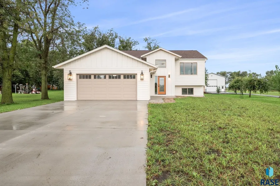 Step into luxury with this professionally designed split-foyer home, where style meets comfort in every detail. From the moment you walk through the spacious entry, you'll notice the vaulted ceilings, modern open layout, and upgraded finishes that set this home apart. The kitchen features sleek quartz countertops, premium appliances included, and plenty of space for cooking and entertaining. Relax in the main living area or enjoy the convenience of a main-floor laundry room designed for everyday ease. Inside, you'll find luxury vinyl flooring, upgraded carpet, and a thoughtful floor plan offering two bedrooms on the main level and two more on the lower level-perfect for family or guests. With the home being fully finished, all you need to do is unpack and enjoy. Step outside to the Trex deck with a modern metal railing, where you can take in the view of the backyard and appreciate the established trees that give this home warmth and character. Nestled in a welcoming small-town community, this property combines peaceful living with a quick commute to both Sioux Falls and Mitchell. This is more than just a house-it's a move-in ready home with all the grades and upgrades you've been looking for. Don't miss your chance to claim it!