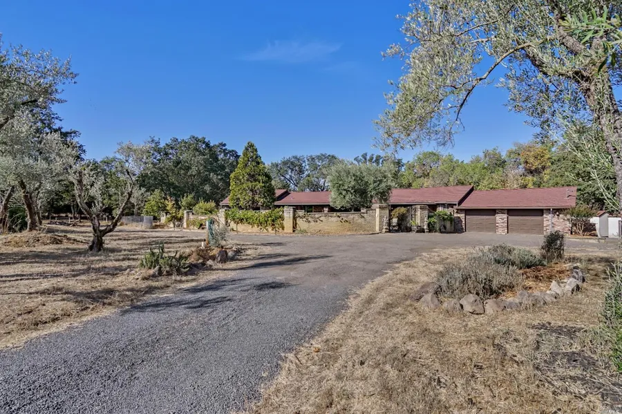 Serene country living in the city! Enjoy the best of both worlds in this updated 3 BR/3 full BA home, located on a sprawling ~4.2 acres. Let your imagination run wild, bring your horses, goats, plant a vineyard or urban garden. The possibilities are endless! Meander down the gated driveway to find a colorful front yard with a soothing waterfall and pond, flanked by pasture on the North and South sides. The well-appointed interior welcomes with engineered hardwood, custom maple cabinetry and slab granite kitchen counters. The primary BR and office are strategically placed on the South side while the 3rd BR and full BA are located on the North side, making it an ideal guest space. All bathrooms have been tastefully remodeled, a tankless water heater and new electrical panels have been installed and the 40-year composition roof is 10 years new. The property is mostly fenced and boasts a variety of fruit to incl. Grapes, Apples, Persimmons, Lemons, Limes, Cherries, Plums, Olives and more!