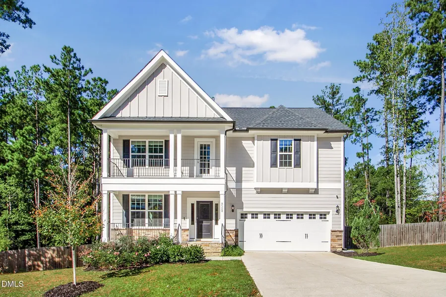 That's a nice lot! 4 bedroom, 2.5-bath, 2 car garage, perfectly situated on a serene .73-acre partially wooded property with a peaceful creek buffer beyond offering both privacy and natural beauty. From the moment you arrive, the double front porch, one welcoming you at the entry and another as a second-floor balcony create adorable curb appeal. Inside, you will find a stunning, coffered dining ceiling, gourmet kitchen and butler, designed for both everyday living and entertaining. Upstairs, the massive primary suite with tray ceiling serves as a true retreat with dual walk-in ''mine and yours'' closets and a convenient direct connection to the laundry room. No lugging laundry across the house! Soak in the large tub with natural filtered light or separate glass enclosed shower. Smart features include Nest Thermostats, Vivint Security System, 2 perimeter cameras; one front and one back of the home, as well as a camera doorbell and electronic front door entry. Out back, enjoy a fully fenced backyard that opens to gorgeous wooded views and a screened-in porch complete with benches that convey, making it the perfect spot to sip your morning coffee or unwind in the evening. Blending comfort, function, and a amble space to stretch out, this home offers an ideal balance of privacy and proximity to Fuquay-Varina's shops, dining, and small-town charm. Private Roads, HOA researching maintenance plans. No City Taxes. HOA Docs found at CAMS Search and Select, Hampton Park Estates Homeowners Association, Inc.
