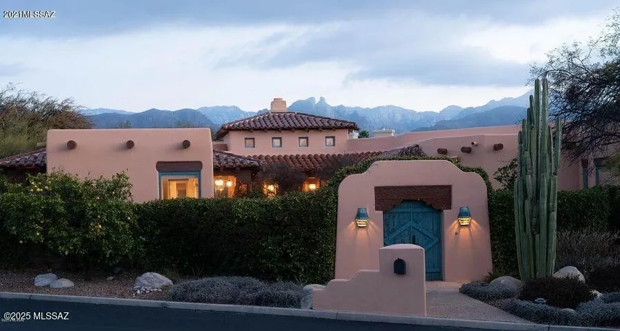 Mediterranean & Southwest architecture blend in this stunning 6 BR 7BA fully furnished sanctuary sitting on 3/4 acre beauty of Sonoran desert tucked away behind the gates of world renowned Canyon Ranch Wellness Resort. Immerse yourself in a year-round privileged Lifestyle with access to first class resort amenities. State of the art Spa, round the clock fitness classes, outdoor activities, hiking , cycling , massages ,tennis, pickleball, pools and wellness treatments all at your fingertip. The peaceful serenity of this house is evident through the statue/fountain, citrus and desert vegetation over the entire meticulously landscaped grounds. A souring masterpiece fire place greets you at the foyer and the great room with breathtaking views of both the Catalina & Rincon mountains . Dining room& the study areas flow gently throughout the great room. Ceiling with exposed wood beams gives it a southwestern touch. More mountain views invited into primary bedroom. Every room enjoys its own full private bathroom. Individual rooms with open access to patio decks. Three bedrooms on each level makes it ideal for large family & guest gatherings. . Separate chef's kitchen, granite counters and a large island with access to the outside deck and barbeque grill makes it perfect for entertaining . Enjoy sunrise and sunset, Rincon & Catalina mountain vistas from the multiple decks in this gem. Vast areas of natural desert landscape surrounds this property. Mexican tiles throughout. Large fully equipped laundry room including linen presser. Attached two car garage with a sizable driveway. Used as a rejuvenating retreat or permanent residence, this property and its surrounds is a slice of heaven.