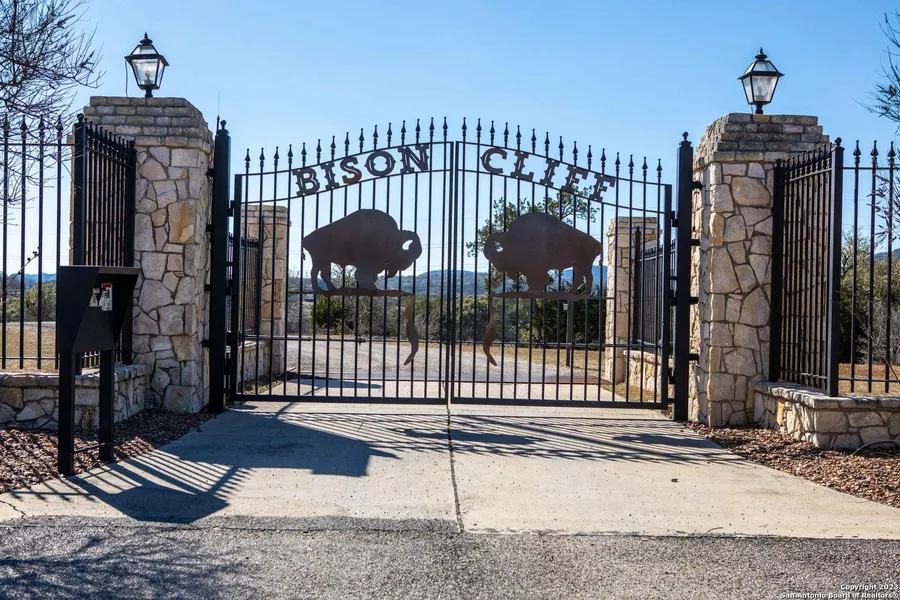 BISON CLIFF RANCH - Located on Hwy 173N between Bandera & Kerrville with approximately 1000 sqft of paved highway frontage makes for convenient commutes. 55.77 Acres with BANDERA CREEK flowing through the middle of the ranch ending in your own private lake. Upon entry through the front gate, you'll recognize the infinite possibilities for this hilltop ranch and all of its opulent comforts. Exquisite 6900 sqft 4 bed 4.5 bath hilltop home with a 360-degree view that terraces down to the pool & outdoor kitchen. Rock, wood & windows abound throughout the home, gas kitchen, interior grill, viewing area, living room, 2 fireplaces, stunning free-standing wood stair case, dining room, game room, saferoom and more. Master suite features living area, fireplace, private patio, dressing room, large master bath and private stairs to second level master closet. Covered lighted horse arena, six professional standard stables with foreman studio, large shop approx. 48 x 36' with loft, cold storage, roll up doors. Shop 2, equipment storage plus Foreman's office. Perimeter high fenced, cross fenced, detached quest quarters. The ranch has towering mature Live Oaks that divide the water from the pastures providing ample shade for your wildlife, horses, or exotics where the carved canyons have flowed for centuries. Hunt, hike, explore for artifacts that have drifted in the creek over time. A prime hill country ranch in a prime location!