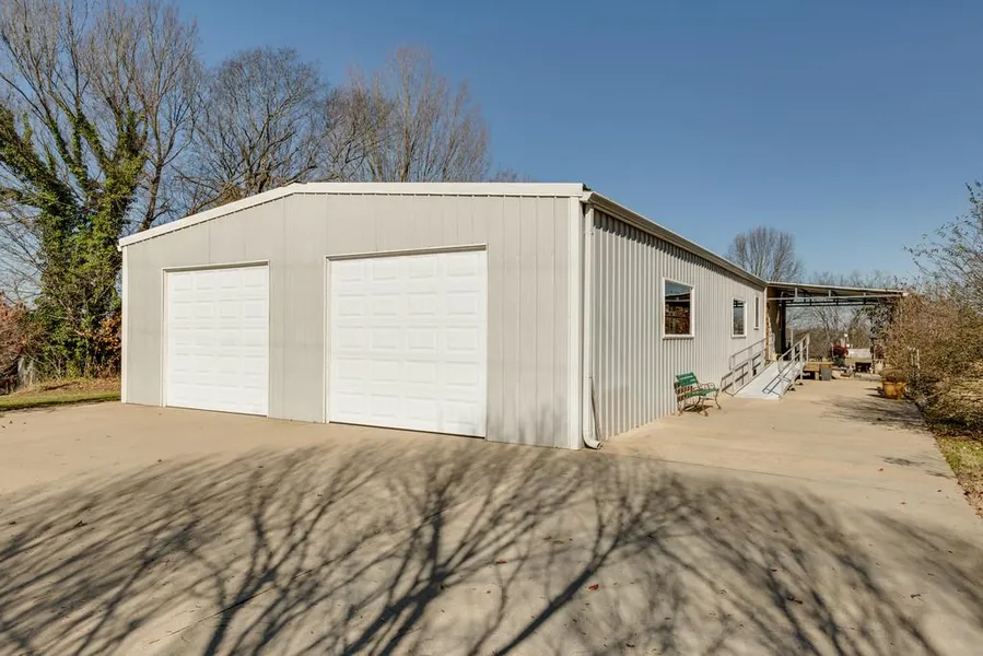 Shop/home all in one sitting on 8 acre tract of quiet country land. 3 Bedrooms/1 Bath and has 1000 Square Feet Living Space. Carpet/Vinyl Floors. 2 Car Attached Garage on the end of the home. 10X15 Utility Room inside of the shop Large entertaining Living Room with carpet. Plenty of windows to give natural light. Eat In Kitchen with partially carpet and tile. Appliances that remain: Electric Stove, Refrigerator, Washer/Dryer and Freezer. Pantry in the Kitchen for can and dry goods. Huge shop on one end of the home where the 2 car garage doors raise up. Plenty of storage area and plenty of room to work. Concrete driveway that comes up to the garage doors to the shop. Covered Patio next to front door and a covered wrap around deck on each side of the end of the home. Large storage building for storing all those yard tools. You can drive all over the 8 acres of land. Beautiful slightly sloping country land. Mostly cleared land with some wooded areas. A large ban on the property. City Water,Septic Tank, Central Electric Heat and Air. Richland School District. Breath taking view of the TN Hills. Property sits well off the road surrounded by peaceful, quiet country life. Plenty of wildlife of all kings.