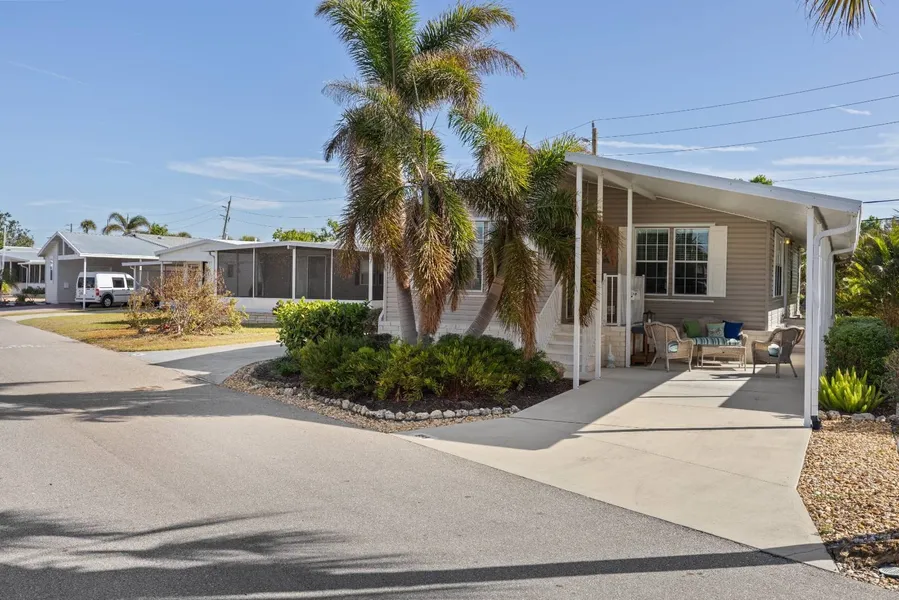 Active 55+ Venice Island Home in Country Club Estates with Direct Trail Access & Community Harbor ? Pet-friendly resident-owned active adult community with low monthly fees, no CDD, and X flood zone for peace of mind ? Private community harbor featuring 120 first-come, first-served boat slips and direct Intracoastal Waterway access-an amazing bonus for boating enthusiasts ? Gated backyard access to the Venetian Waterway Trail connects seamlessly to the Legacy Trail, downtown Venice, beaches, theatre, farmers market, and shopping. This beautifully updated 2009 Jacobsen customized manufactured home features: ? New roof (Dec 2024) ? New AC (Apr 2024) ? New stove & microwave (Nov 2024) ? Full hurricane protection ? Bright open floor plan with 10-ft ceilings, extra-wide hallways, abundant natural light from large windows, and a spacious kitchen island with deep pot/pan drawers ? The primary suite offers dual sinks, step-in shower, and walk-in closet ? Dedicated laundry room includes utility tub and full-size washer/dryer. Outdoor living shines with professional landscaping, covered front patio, scenic back porch, and a storage shed ? Steps from the backyard is a gated entrance onto the trail for easy biking, walking, or beach outings. Country Club Estates Lifestyle: This amenity-rich community provides ample opportunity to relax in the heated pool and spa with water aerobics, stay fit in the equipped fitness center, or play on tennis, pickleball, bocce, shuffleboard, horseshoes, or billiards courts ? Two clubhouses host events, cards, trivia, and dinners ? Creative spaces include library, sewing, arts/crafts rooms, and pottery studio with kiln ? Enjoy the community harbor for boating, cycle to beaches/farmers markets/medical/shopping/downtown, while living a low-maintenance Florida lifestyle on vibrant Venice Island.