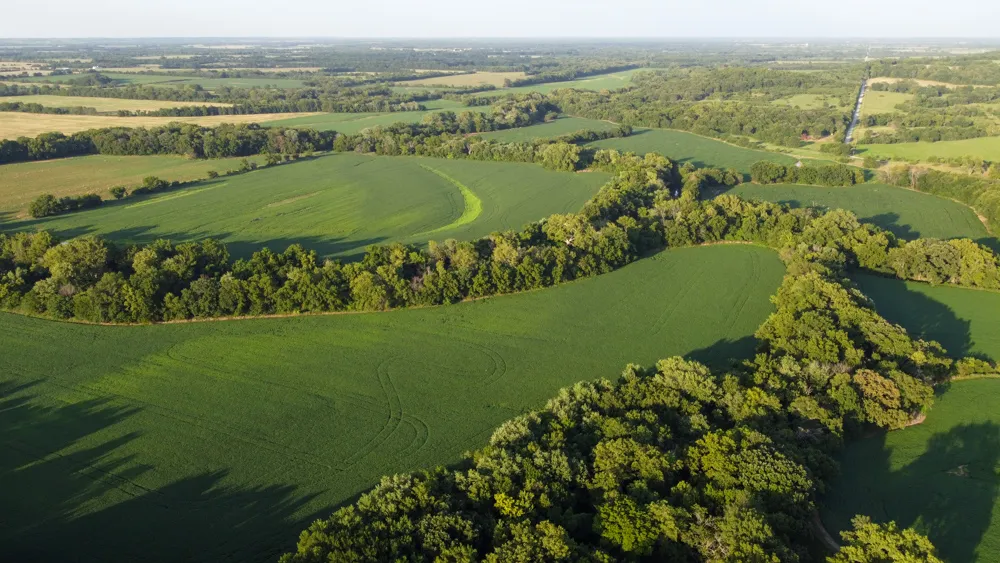 This awesome tract in northern Bourbon County is comprised of 86 +/- acres with 67 +/- FSA acres in productive tillable ground currently being farmed on a crop share with a local farmer. The farm is planted to beans this year, and with the moisture we’ve had, the crop looks phenomenal! The Little Osage River winds through the center of the farm, providing a phenomenal wildlife corridor with plenty of timbered edge and pockets. Just south of Mapleton, the farm is on a blacktop road and in one of the best big deer neighborhoods in the county. The southwest corner is a great timber pocket that allows you to slip into a morning stand without blowing out the deer feeding.