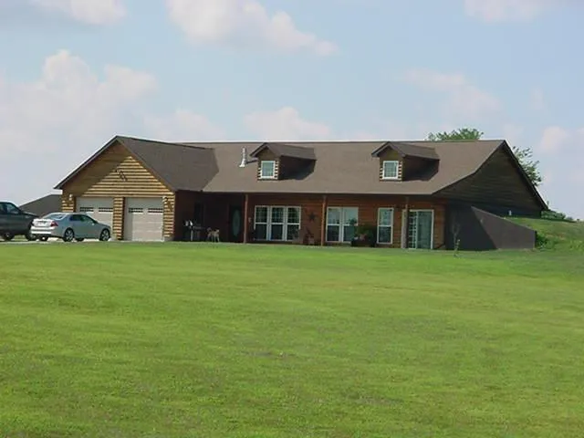 This 3 bedroom, 2 1/2 bath ranch earth contact home features log siding and colored stamped concrete porch and patio. The home is all electric w/heat pump except for the gas fireplace and has an open floor plan. Modern country living at it's best!