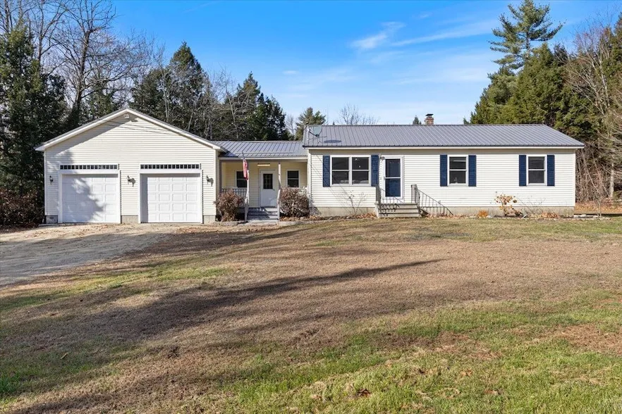 Welcome to this meticulously maintained 4-bedroom home on 2.55 private acres, offering a blend of privacy and thoughtful single-level living. Set back from the road, this serene property provides secluded comfort with convenient access to local amenities, including a short nearby baseball field. The spacious primary en-suite features a beautifully renovated bathroom with a walk-in tiled shower, a large walk-in closet, and direct access to the freshly painted 500 sqft back deck ideal for relaxation and entertaining. The open kitchen is equipped with an island with barstool seating, and a cozy eat-in area, flowing into an inviting living. The outdoor oasis includes a heated 650 sqft in-ground pool (professionally closed for the season), a hot tub, and a fenced backyard. An oversized 330 sqft shed offers ample storage for pool equipment and seasonal items. Inside, the finished basement offers flexible rooms for a home office, gym, or rec area. Additional features include a metal roof (two-year-old garage roof $7,500), and a direct-entry two-car attached garage accessible through the mudroom leading to a flex/formal dining room with vaulted ceilings and a gas fireplace. Practical amenities enhance the home, including first-floor laundry (washer and dryer included), efficient hot water baseboard heating, and two supplemental monitor heaters. This home has been meticulously cared for, with recent servicing of the water system, heating system, and septic pumping/filter replacement. A radon air mitigation system was installed in 2021, and water radon testing has returned satisfactory results. Conveniently located just 15 minutes from Auburn and 30 minutes from Augusta, this exceptional property combines peaceful, private living with easy access to nearby cities, making it the perfect retreat.