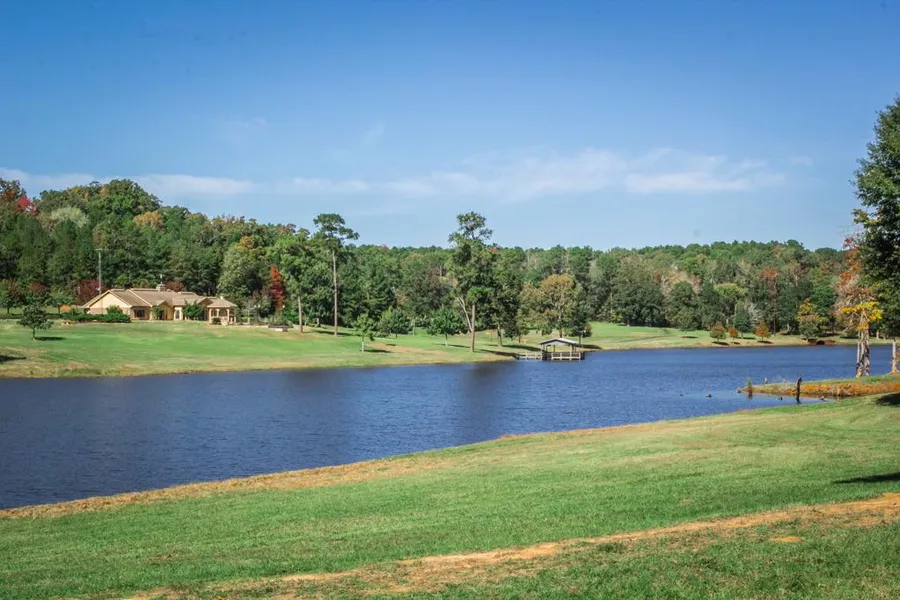 Water: The property boasts a 14 acre private lake stocked full of trophy bass, and other species, an additional 1 acre "catfish pond" also serves for great fishing. The 14 acre lake has a concrete spillway, is approx. 30-35 feet in depth, features a covered boat dock with electric lift, as well as an open dock for fishing enjoyment.