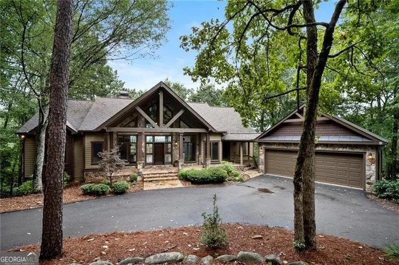 Well appointed 4 BR & 3.5 BATH design Executive home with an expansive open floorplan located on top of Summit with panoramic long range mountain views from every vantage point. Hardwood floors throughout the main level, high volume ceilings with exposed wood beams and stacked stone fireplace from floor to ceiling, built-in cabinets, and the back wall is home to a wall of windows with views from every vantage point. Cathedral ceiling with T&G wood in the kitchen and dining area, plus a keeping room /study with large picture windows on 3 sides of this space to enjoy long range views from as an added bonus. Oversize gourmet kitchen with stainless steel appliances, solid wood cabinets, quartz countertops, work island and breakfast nook area. Oversize Master BR suite with double trey ceiling, hardwood floors and large picture windows, and the expansive master bath is equipped with a steam shower and separate walk-in jacuzzi tub, plus custom built-in shelving in the master closet. On the terrace level there are two additional bedroom enclave suites, a large family room with stacked stone fireplace, large built-in bar with kitchenette ideal for entertaining, and a custom-built wine cellar that cost over $50,000 to complete. In addition, the movie room downstairs was originally the 4th bedroom, but can easily be converted back into additional sleeping quarters if needed. Pella windows throughout, flagstone covered front porch, EZ Breeze enclosed porch and expansive deck area with maintenance free Trex boards on the main and covered deck on the terrace level. A circular driveway for easy access, centrally located within the community with close proximity to the amenities, and located just 5 minutes to the North Gate for quick ingress and egress. This special one of a kind home delivers rustic elegance throughout. A must see!